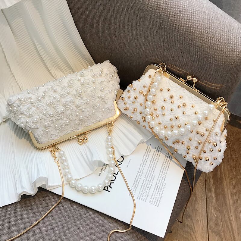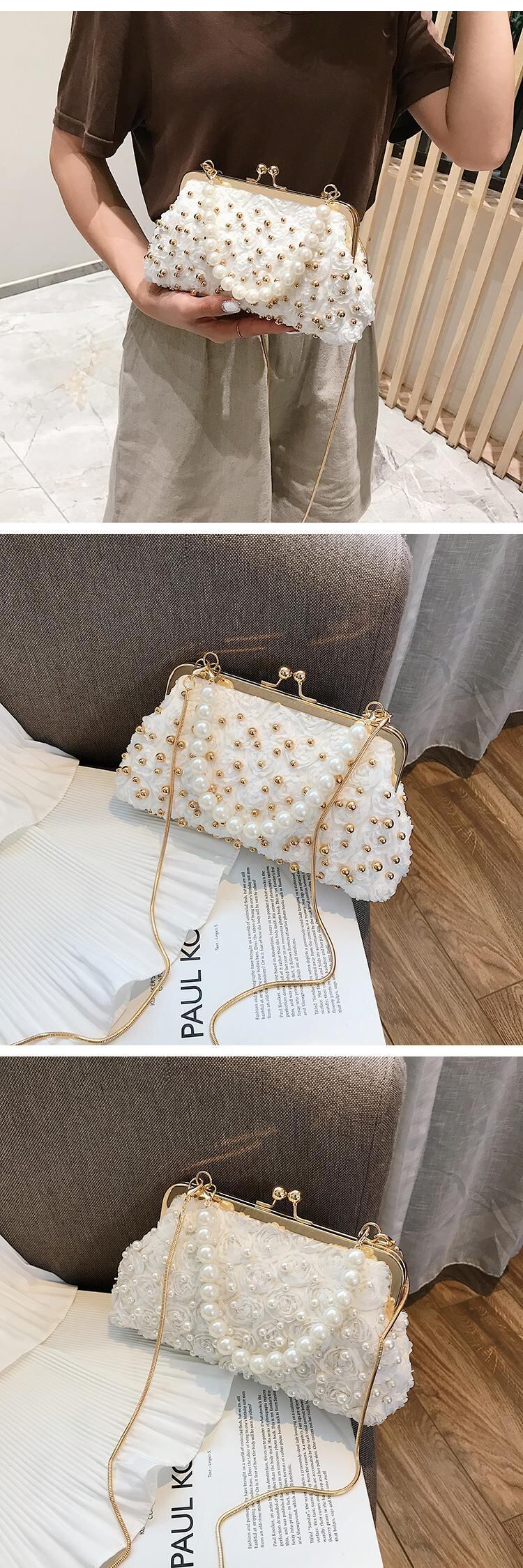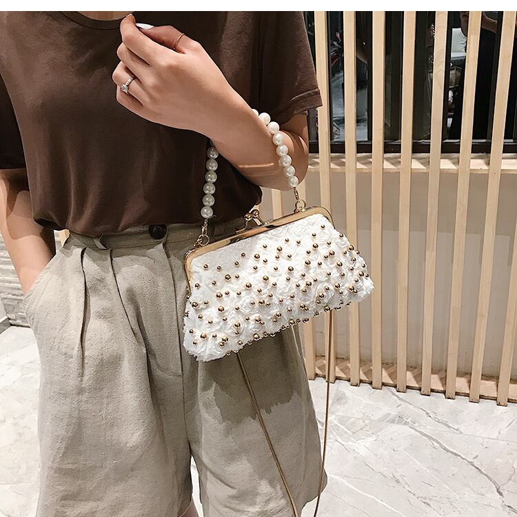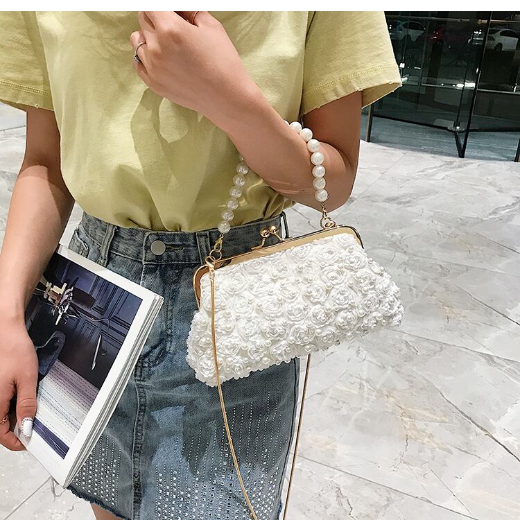 サマーチェーン パール 夏物 真珠 メッセンジャーバッグ 手作りハンドバック88646270773