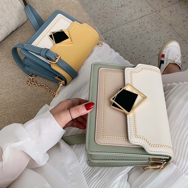 スタイルチェーン カラー スクウェア メッセンジャーバッグ 手作りハンドバック92220775701