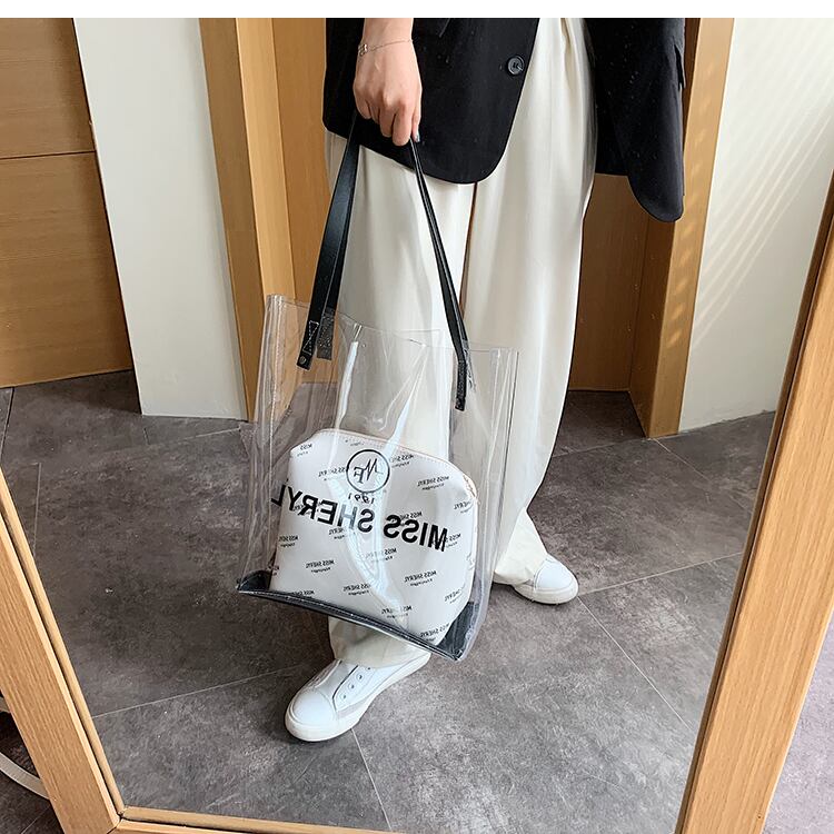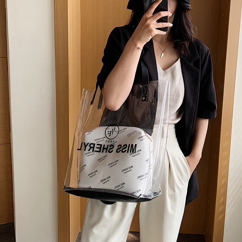 夏の透明バッグハンドバッグ2020人気の新しい流行のファッション大容量レディースショルダーバッグポータブルトートバッグ 手作りハンドバック84724434732