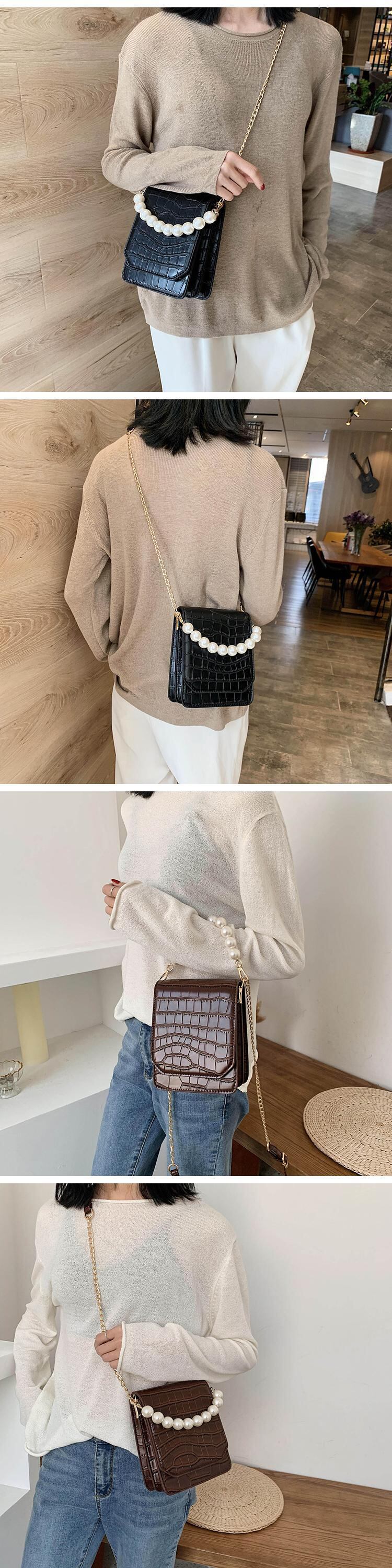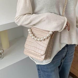 レトロスモールバッグメス2020新しい流行のファッションオールマッチメッセンジャーバッグチェーンショルダーバッグパールポータブルスモールスクエアバッグ 手作りハンドバック27835780712