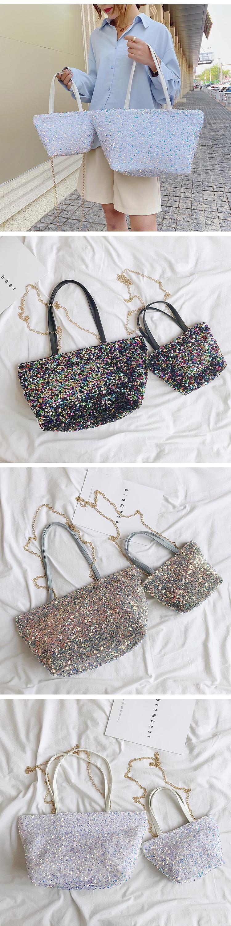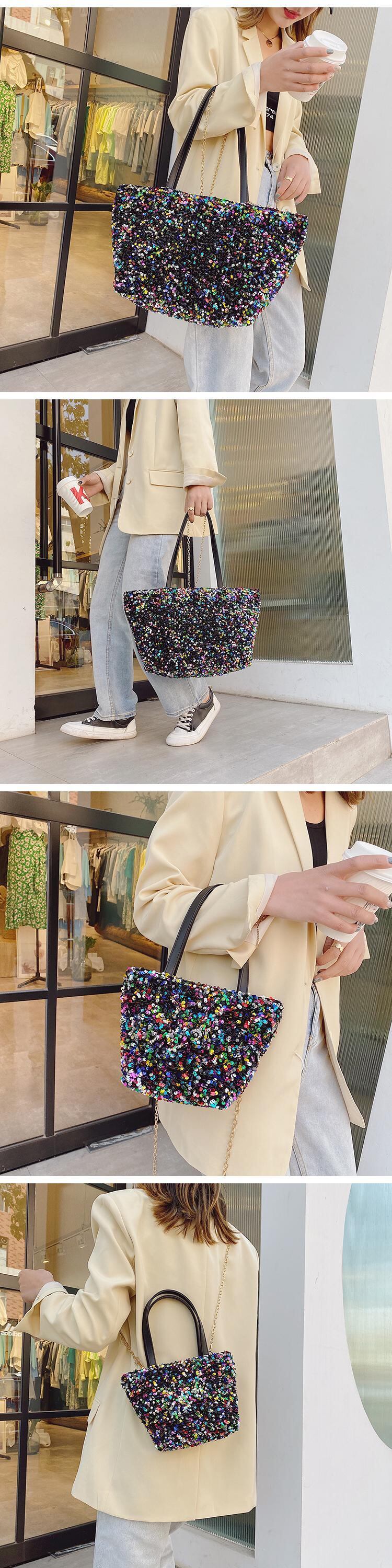 大容量バッグ2020新しい流行のファッションレディースバッグオールマッチスパンコールショルダーバッグチェーンクロスボディポータブルトートバッグ 手作りハンドバック39017682478