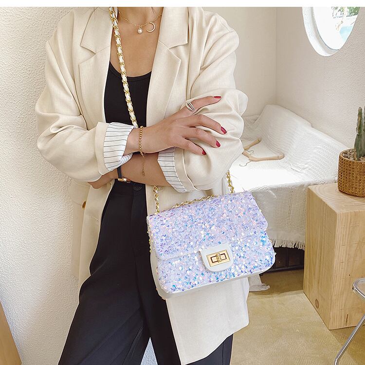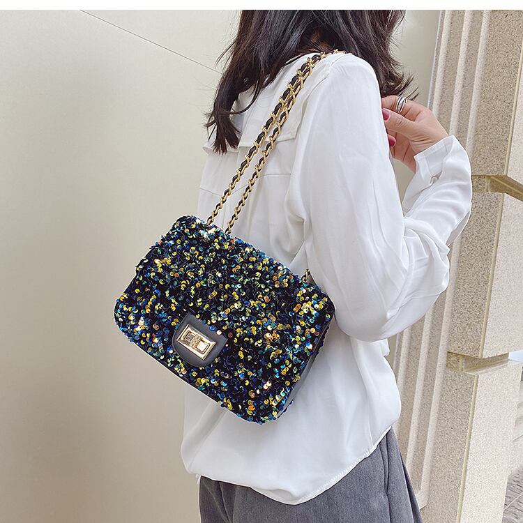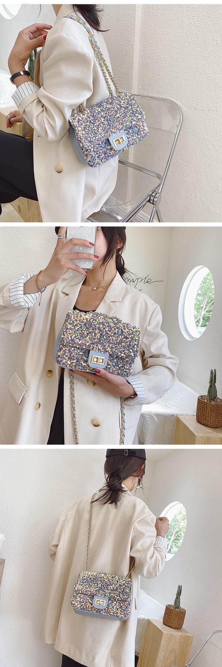 ネットセレブ春夏ニューバッグウィメンズ2020オールマッチクロスボディバッグハイエンドセンスのウエスタンスタイルチェーンスパンコールファッションショルダーバッグ 手作りハンドバック43721075798