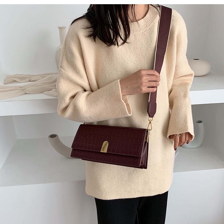 フレンチニッチバッグ女性2020新しい流行の石のテクスチャメッセンジャーバッグワイドショルダーストラップウエスタンスタイルシングルショルダー小さな正方形のバッグ 手作りハンドバック97218140875