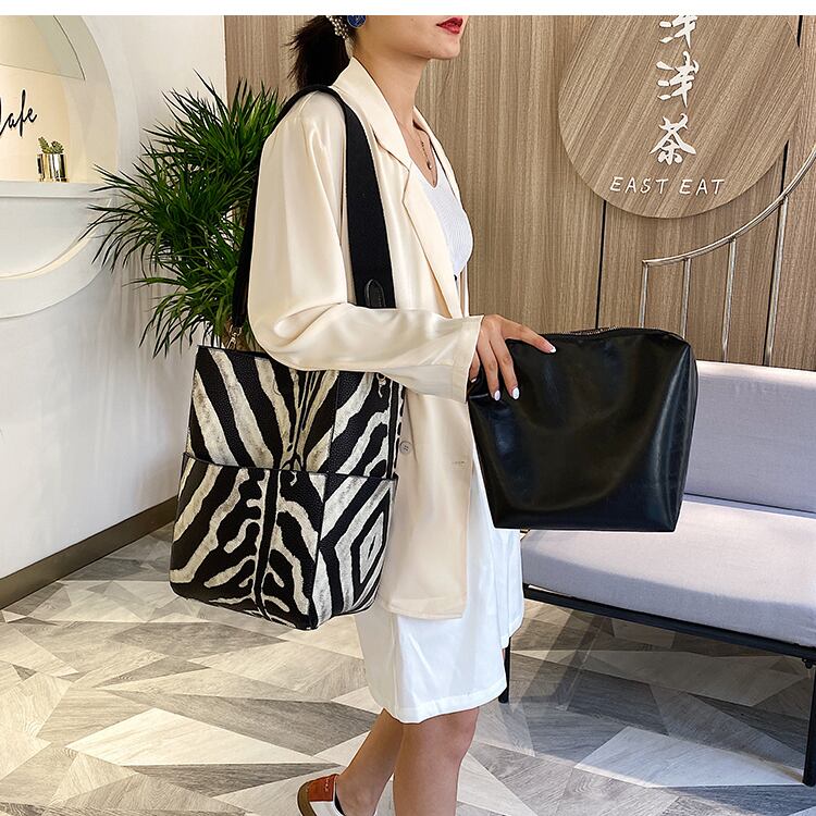 ネットセレブ大容量レディースバッグ2020人気の新しい流行のファッションワイルドインズオールドゼブラパターンショルダーバッグ 手作りハンドバック67376015489