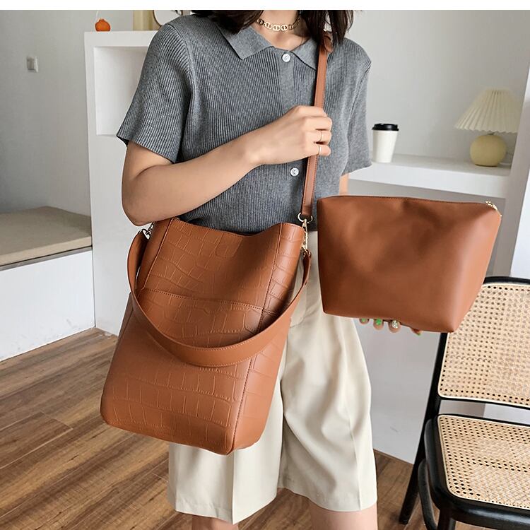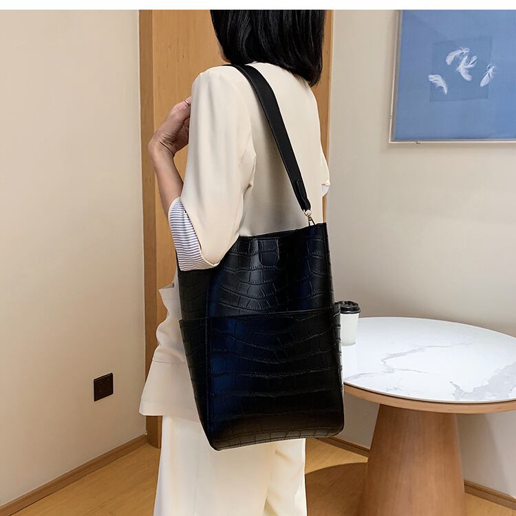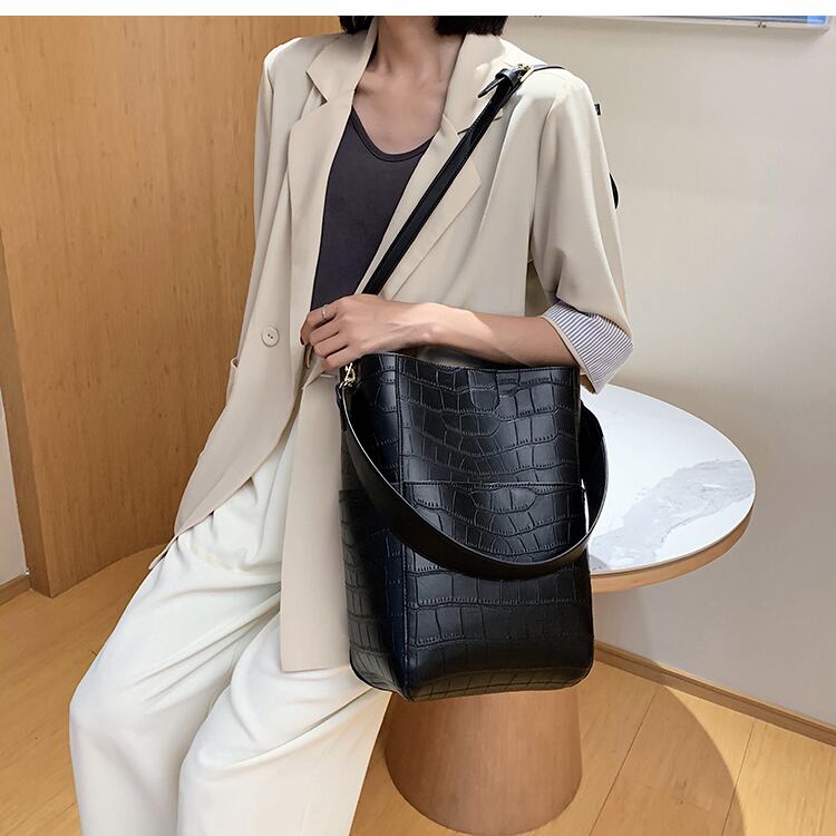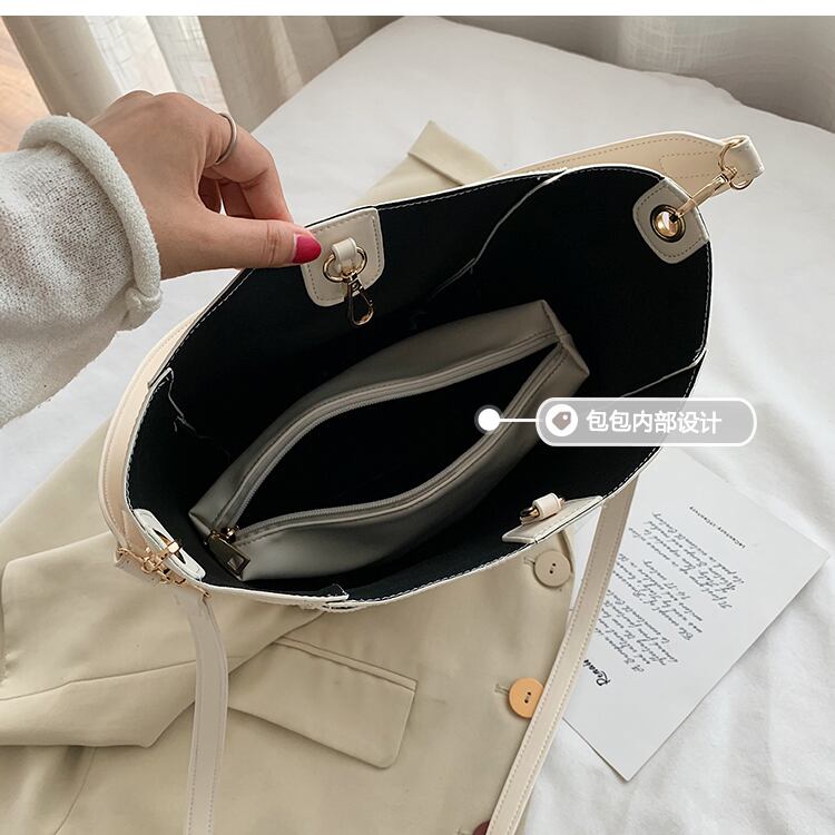 ビッグバッグ女性2020新しい流行のファッションシンプルな大容量の写真と香港スタイルのメッセンジャーバケットバッグのマザーショルダーバッグバージョン 手作りハンドバック81045970859