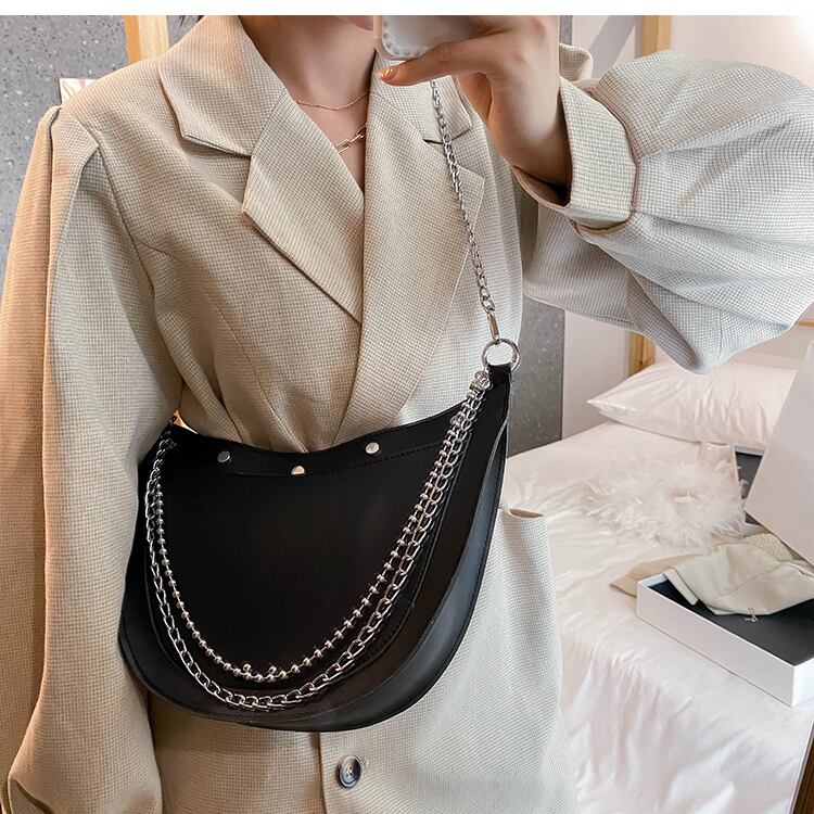 秋冬スモールバッグレディースバッグ2020新しい流行のファッションチェーンワンショルダーアンダーアームバッグネットレッドテクスチャクロスボディサドルバッグ 手作りハンドバック6578845630