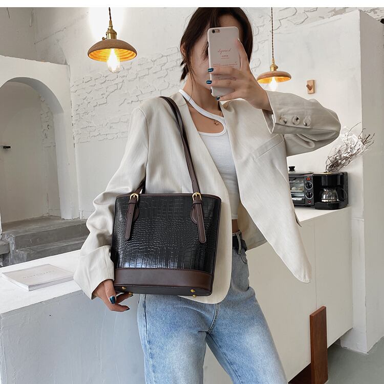 香港スタイルの女性用大容量バッグ女性用バッグ2020人気の新しい流行のファッションオールマッチショルダーバッグネットレッドバケットバッグ 手作りハンドバック49245103742