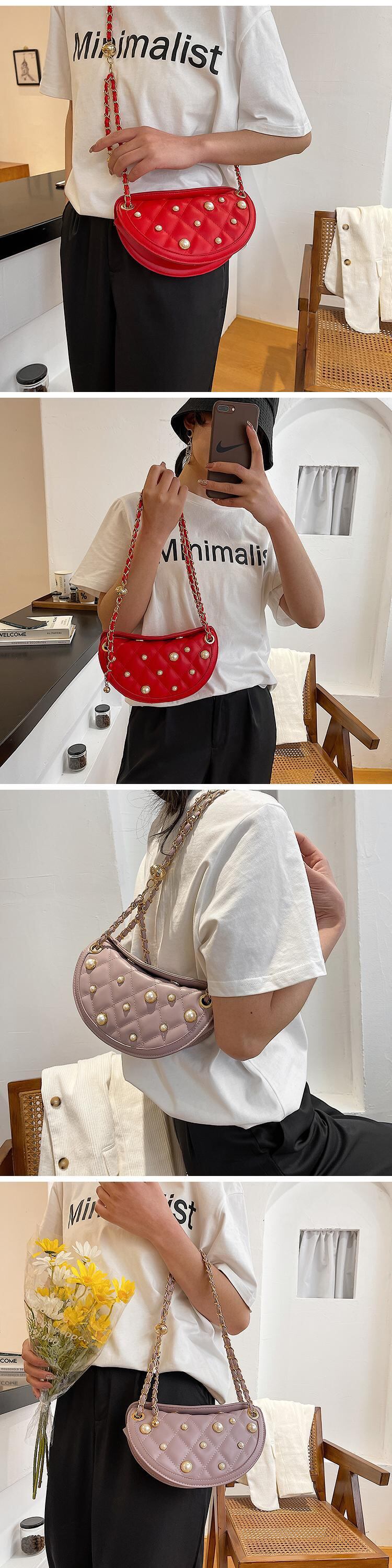 パールチェーン 真珠 ハンドバッグ メッセンジャーバッグ 手作りハンドバック68437037484