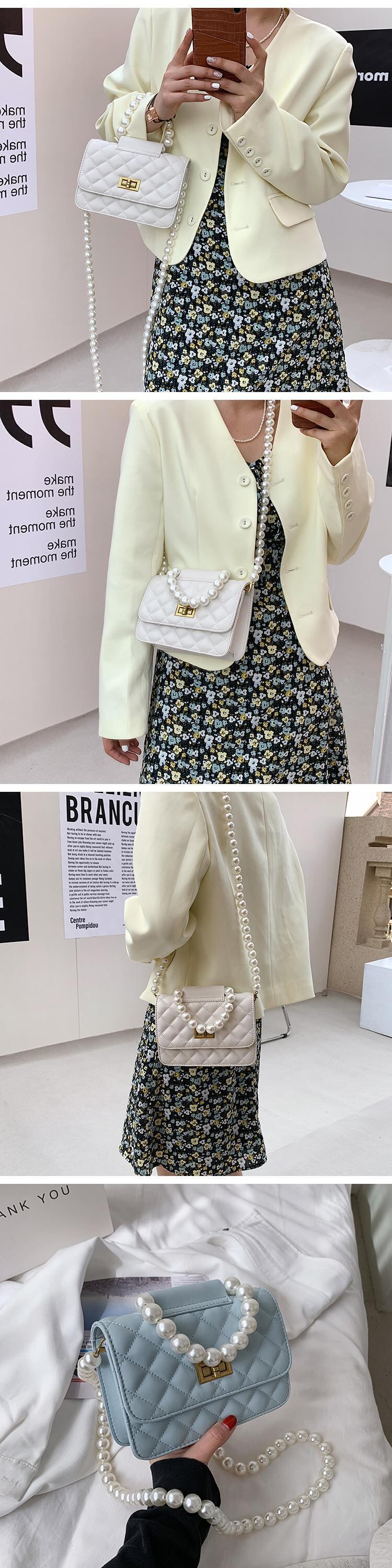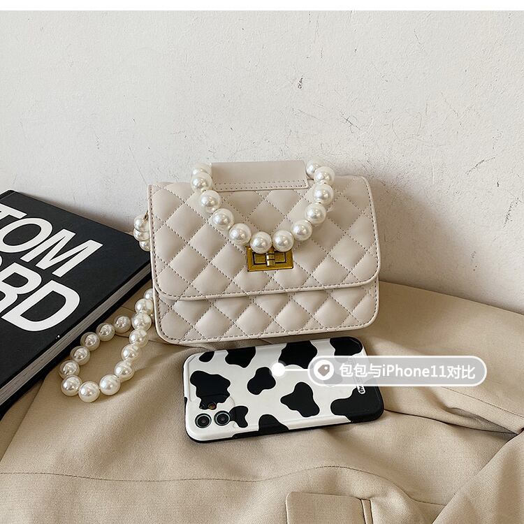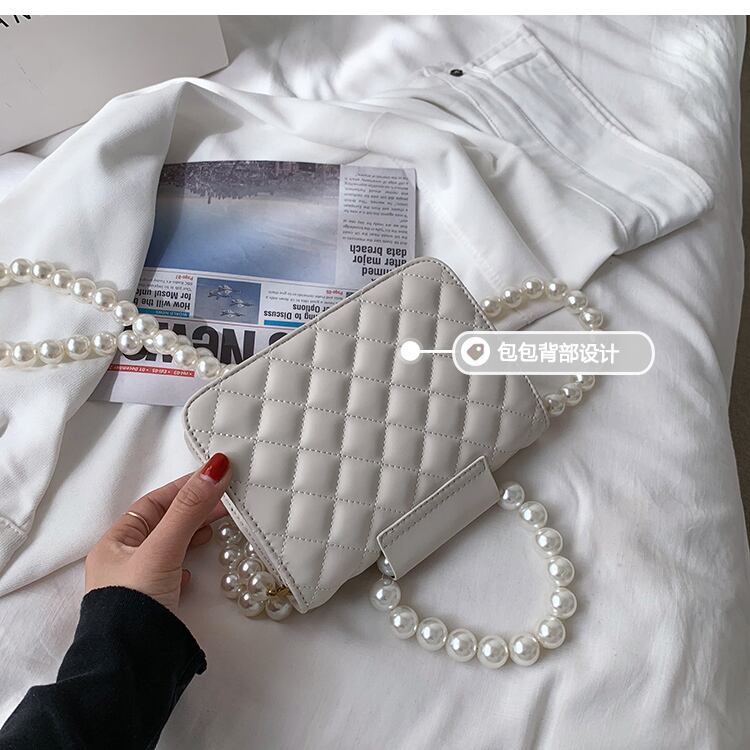 サマーパールチェーン レッド 夏物 真珠 スクウェア メッセンジャーバッグ 手作りハンドバック47607813026