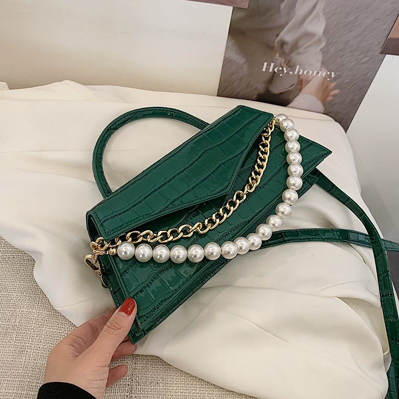 サマーパール 夏物 真珠 スクウェア メッセンジャーバッグ 手作りハンドバック97217336933