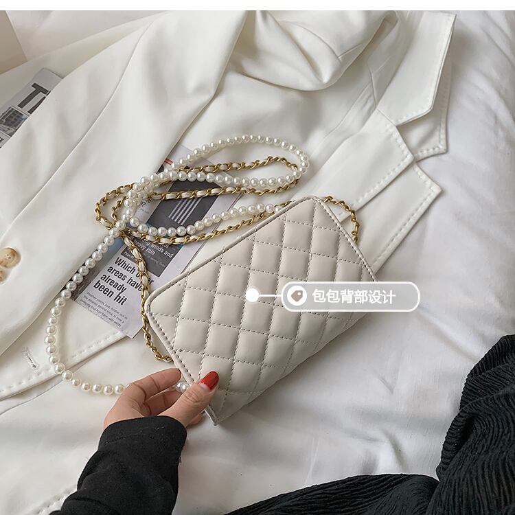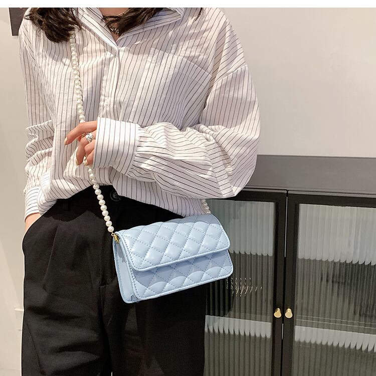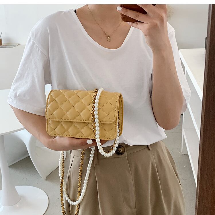 パールチェーン サマーレッド 夏物 真珠 スクウェア メッセンジャーバッグ 手作りハンドバック75932892199