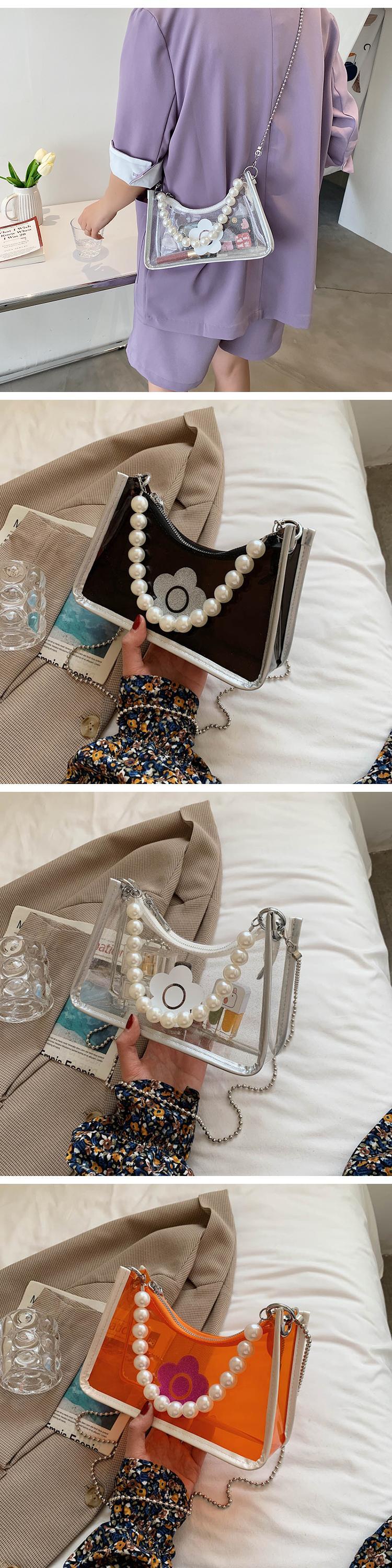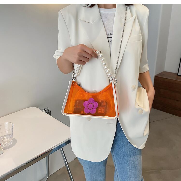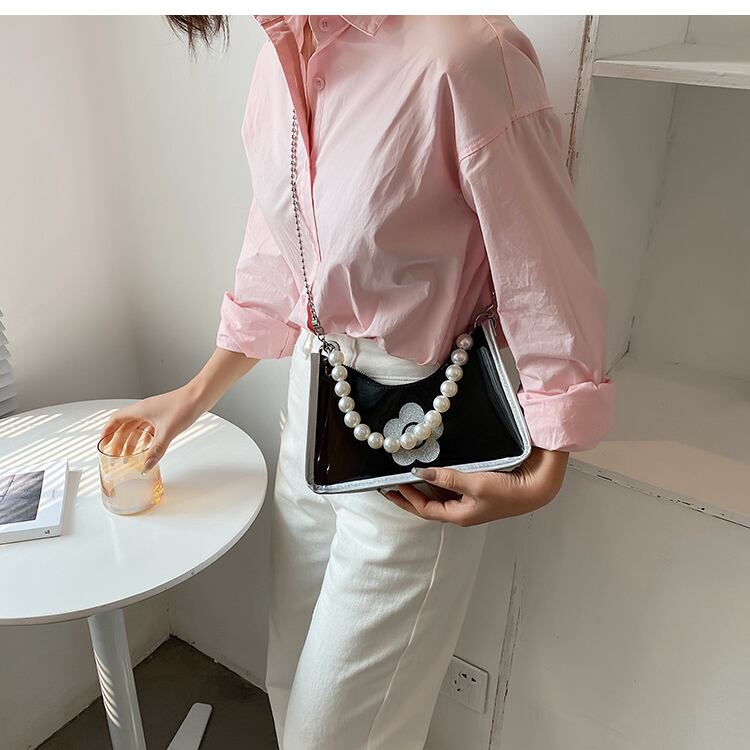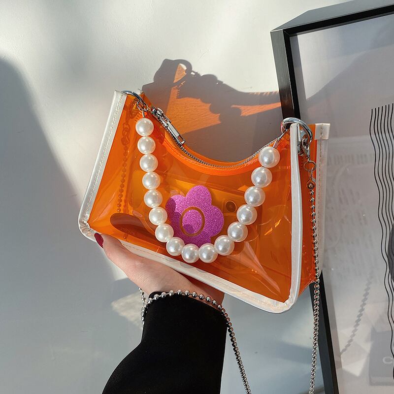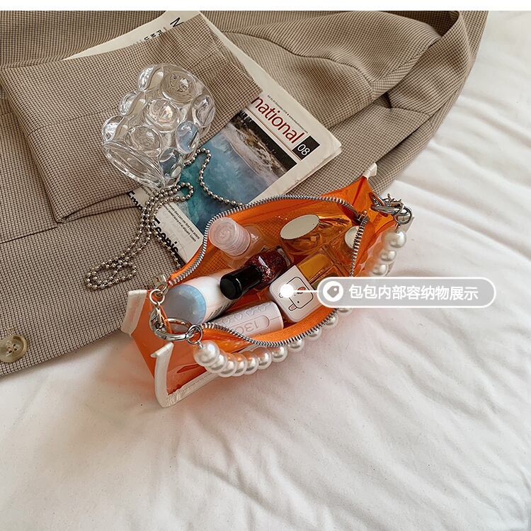 サマーレッドスタイルチェーン パール 夏物 真珠 スクウェア メッセンジャーバッグ 手作りハンドバック73596691236