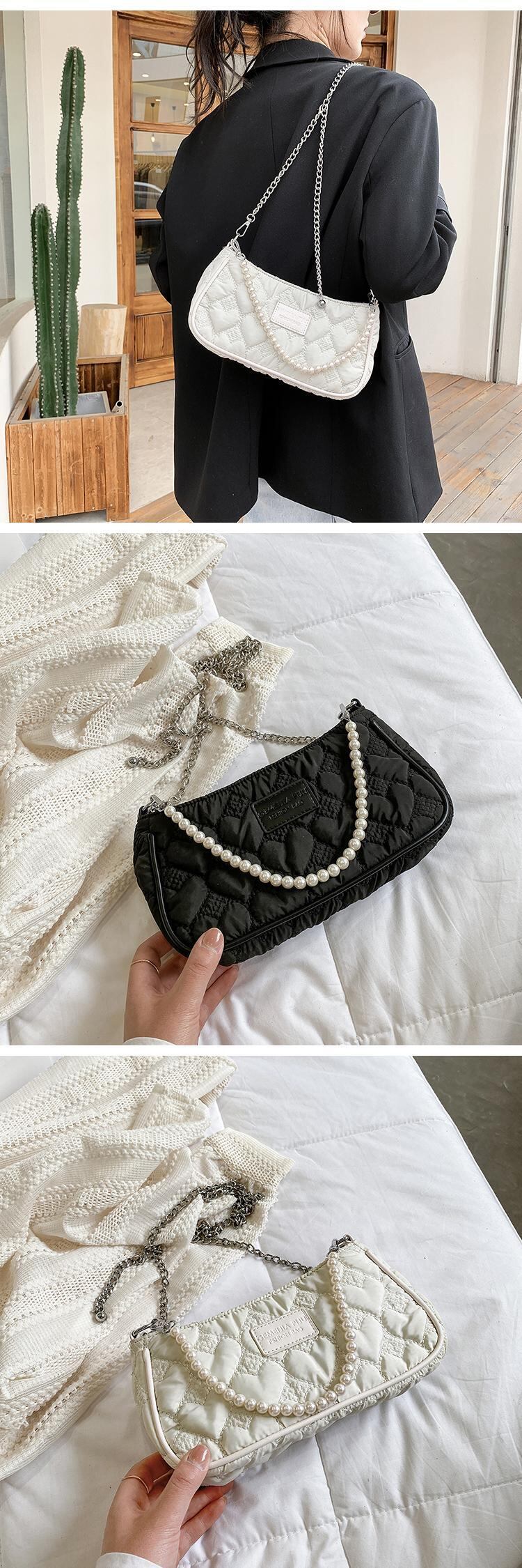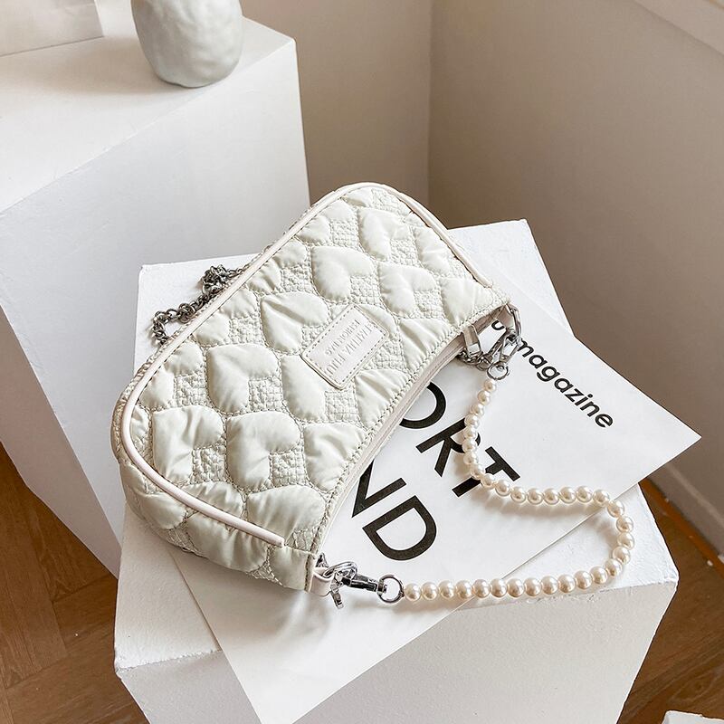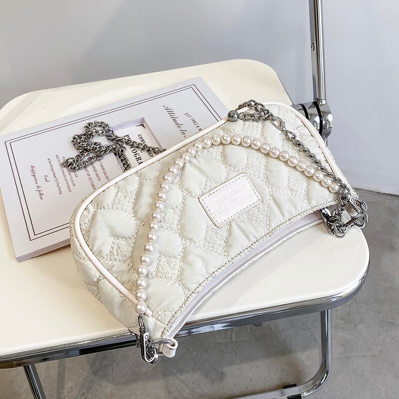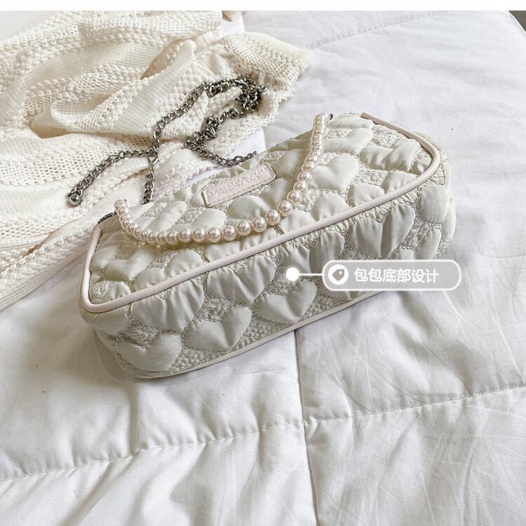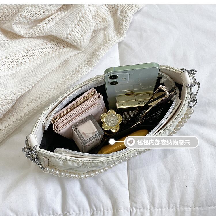 サマーレッドパールチェーン 夏物 真珠 スクウェア メッセンジャーバッグ 手作りハンドバック34564544997