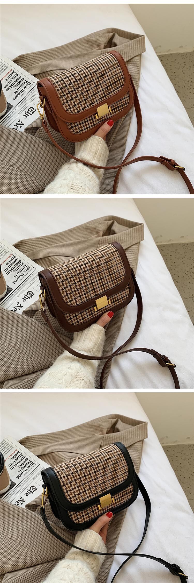 スタイルオータムウィンタースタンダード レトロ 秋物 冬物 スクウェア メッセンジャーバッグ 手作りハンドバック32789161519