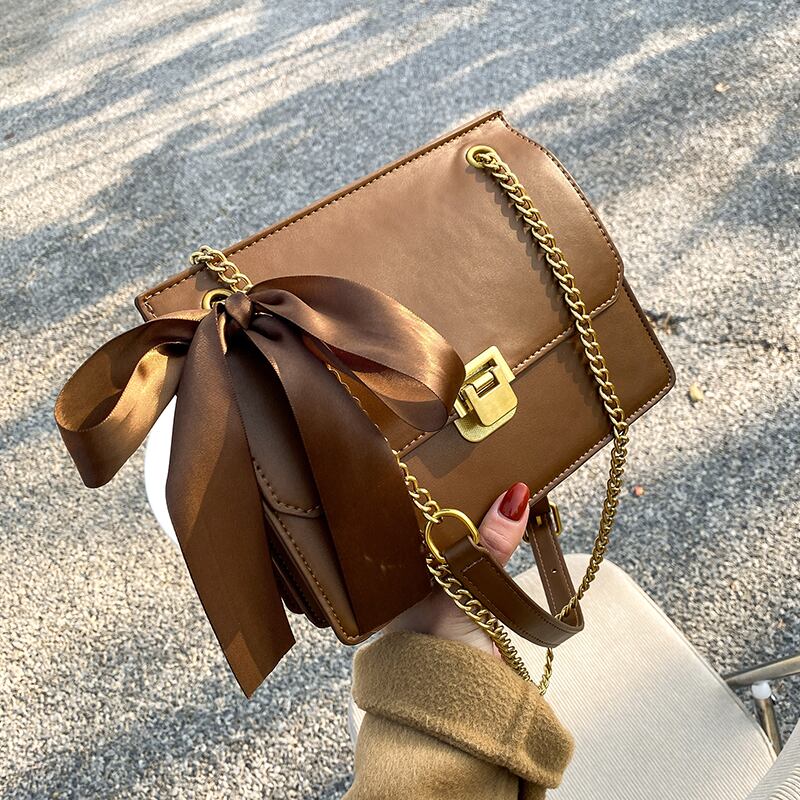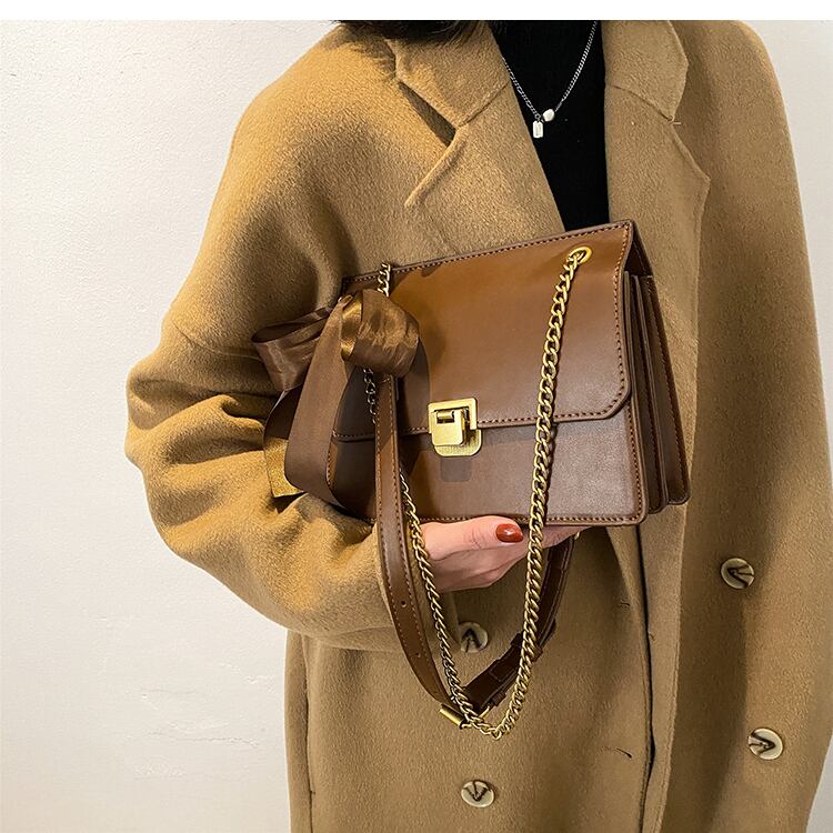 スタンダードオータムウィンターチェーン レッド レトロ 秋物 冬物 スクウェア メッセンジャーバッグ 手作りハンドバック89635033004