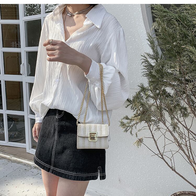 レディースサマーミニチェーン 夏物 スクウェア メッセンジャーバッグ 手作りハンドバック90490746329