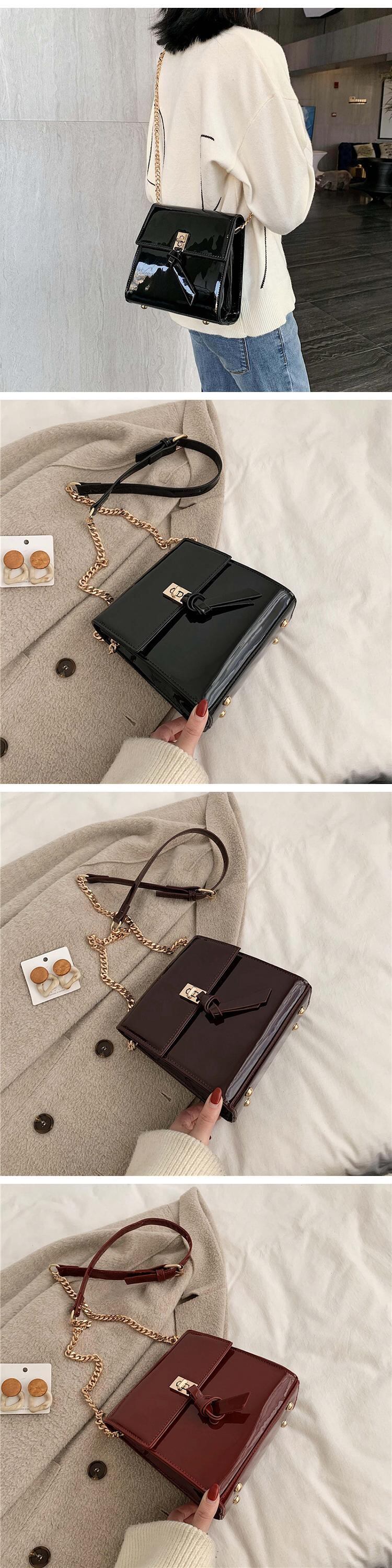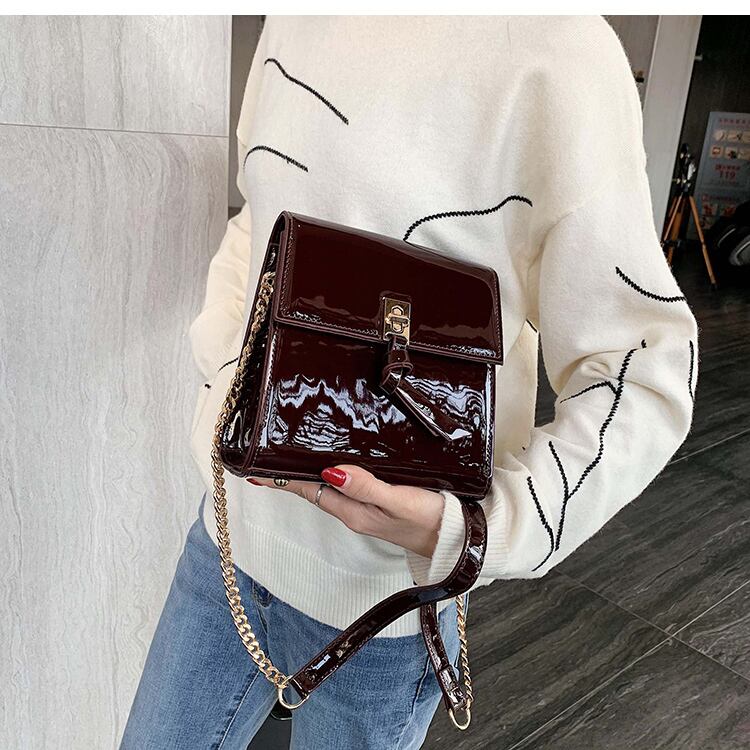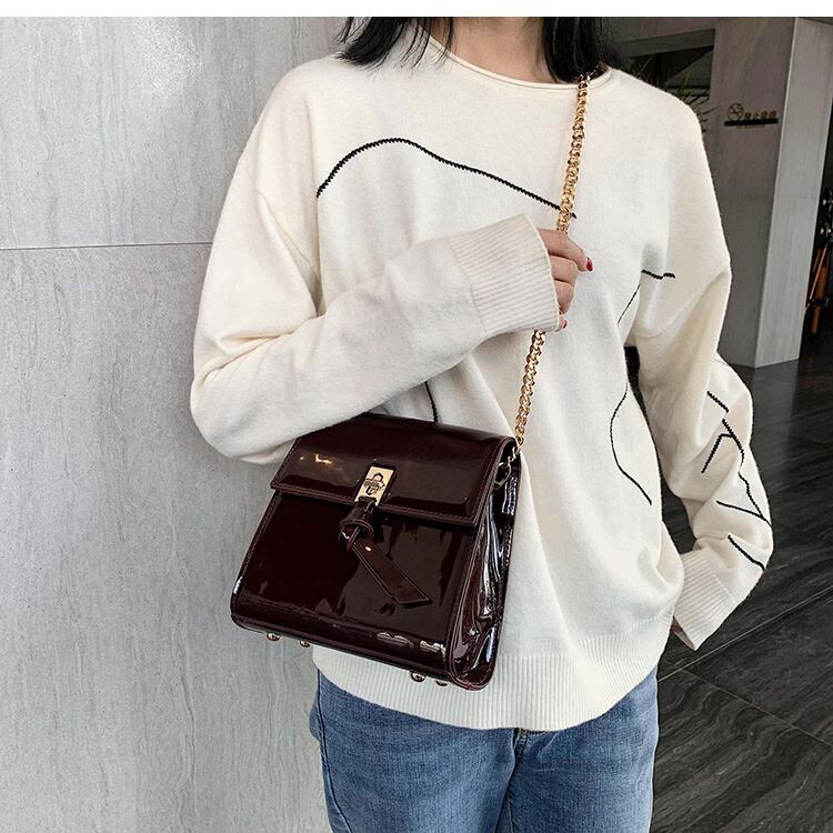 レザースタイルレッドチェーン クロスボディ スクウェア 手作りハンドバック36560841746