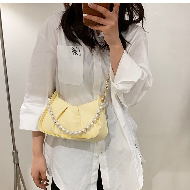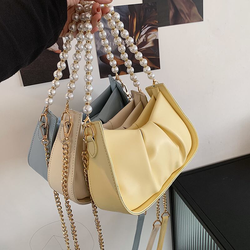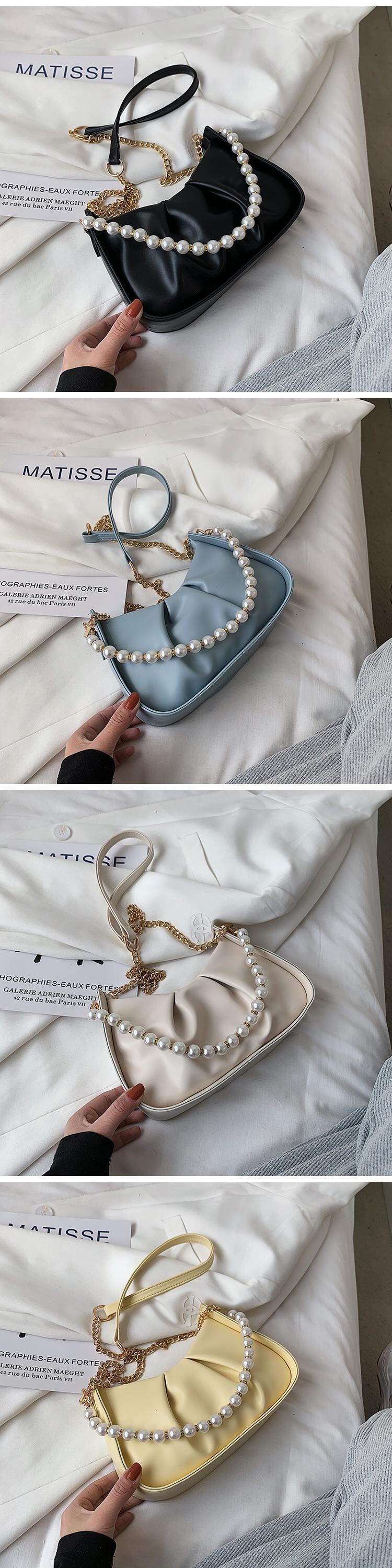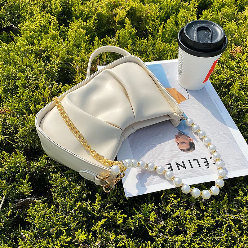 サマーチェーン パール 夏物 真珠 ハンドバッグ メッセンジャーバッグ 手作りハンドバック80096933289