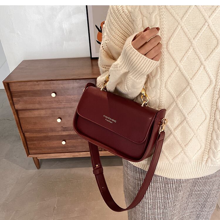 レディースオータムウィンターチェーン レッド 秋物 冬物 スクウェア メッセンジャーバッグ 手作りハンドバック96473464956