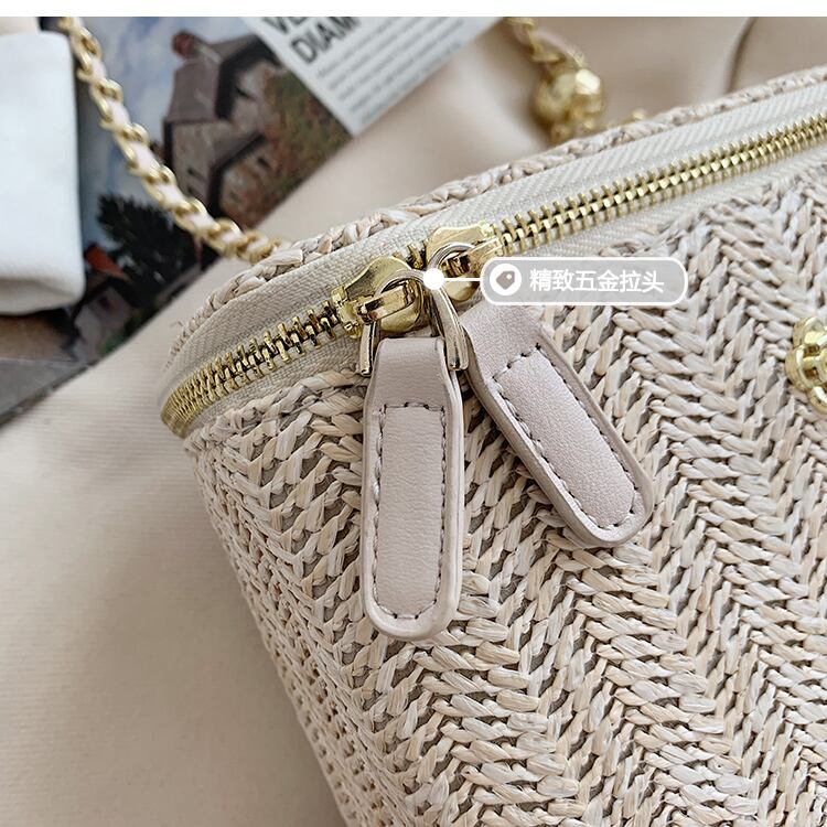 サマーチェーン 夏物 ストローバッグ スクウェア 手作りハンドバック4649253277