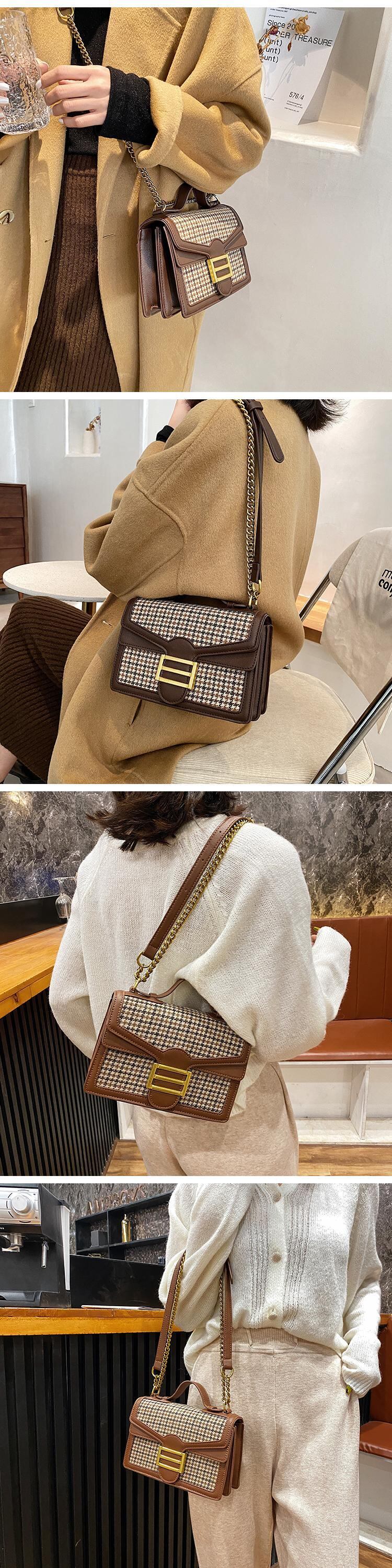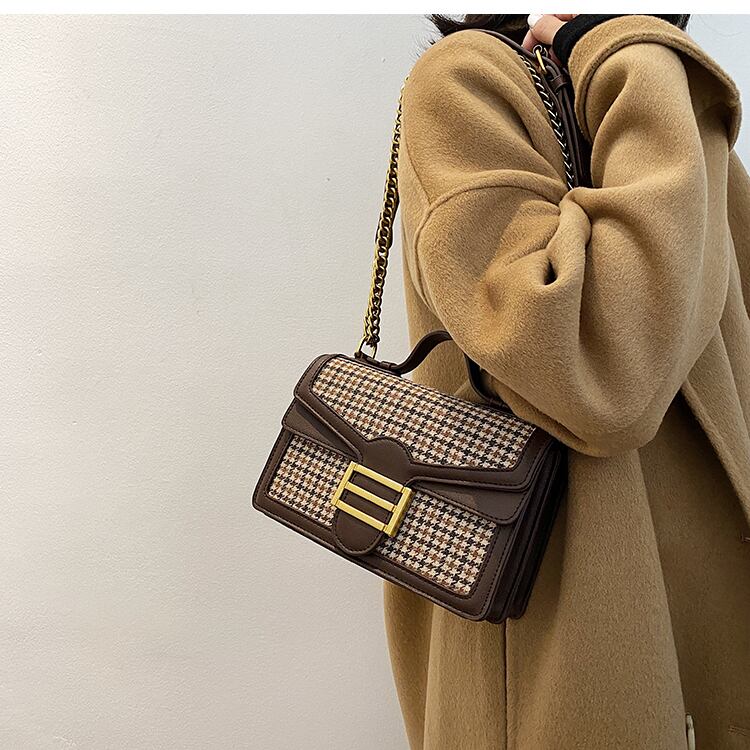 チェーン オータムウィンターレッドスタンダード レトロ 秋物 冬物 スクウェア メッセンジャーバッグ 手作りハンドバック72127788392