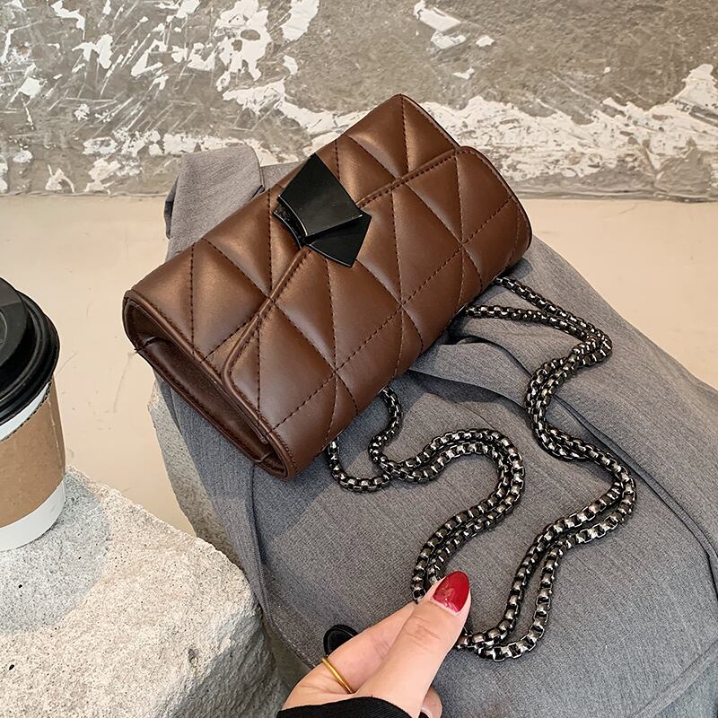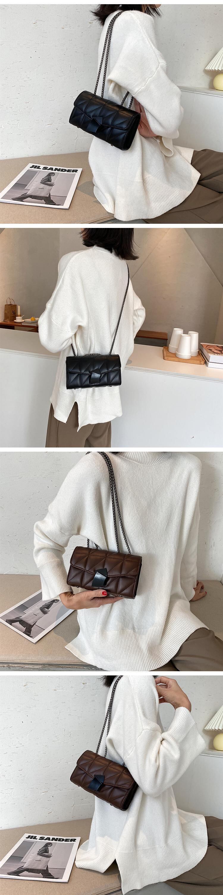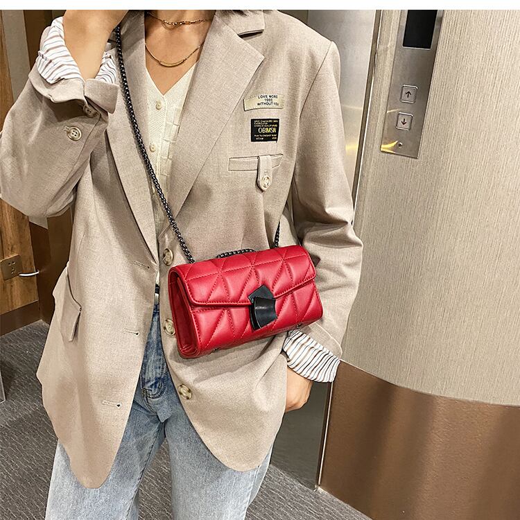 オータムウィンターレディースチェーン レッド 秋物 冬物 スクウェア メッセンジャーバッグ 手作りハンドバック7657962786