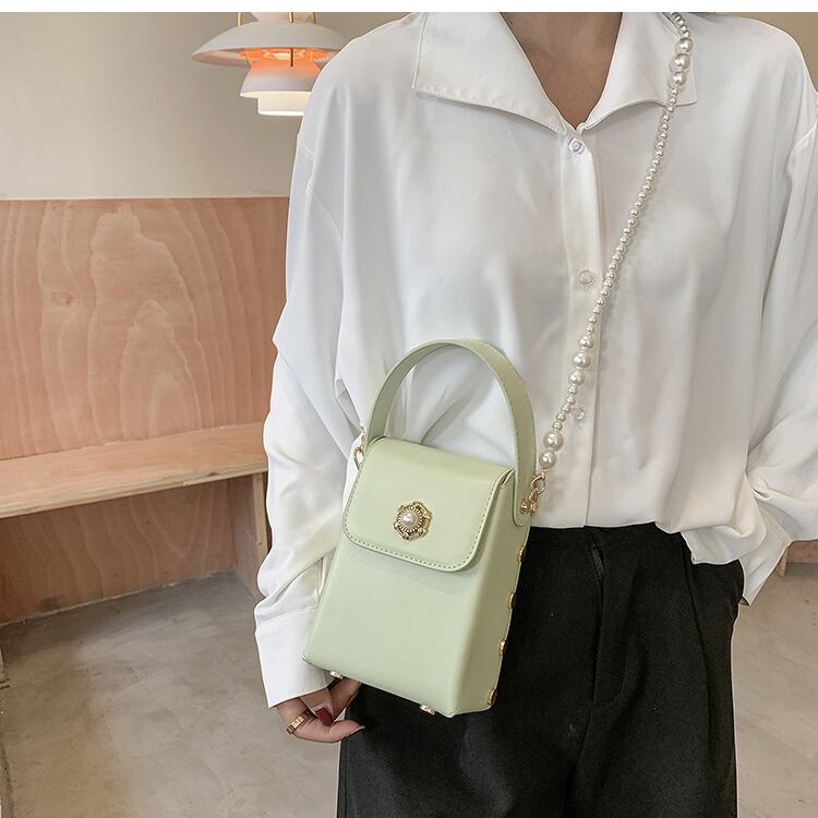 サマーパールチェーン 夏物 真珠 スクウェア 手作りハンドバック60101352314