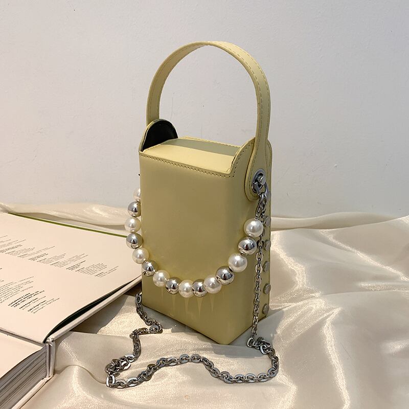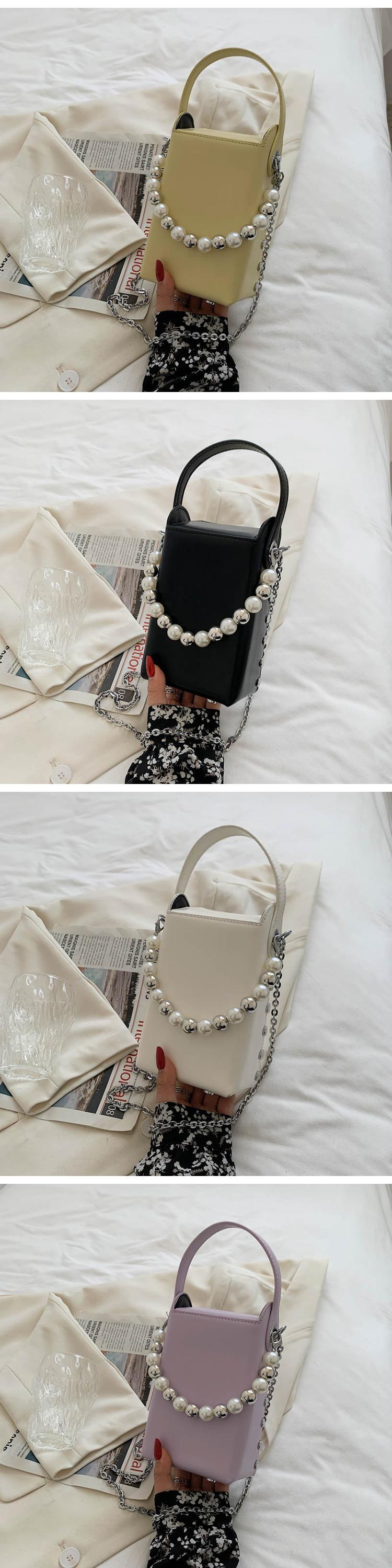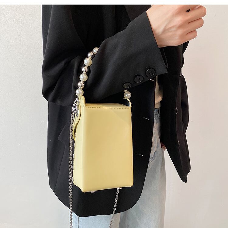 サマーパールチェーン 夏物 真珠 スクウェア 手作りハンドバック56674830908