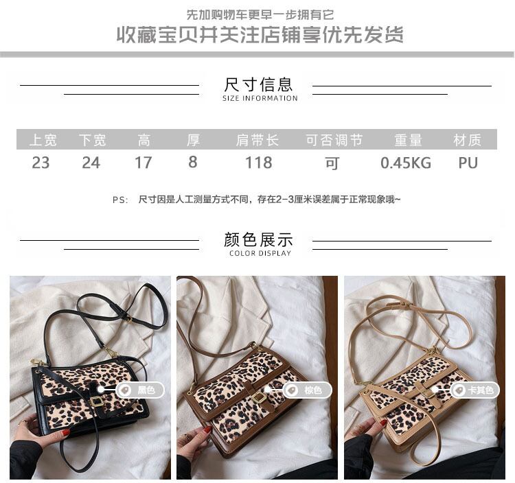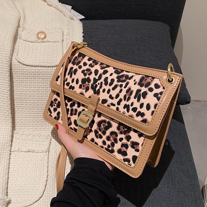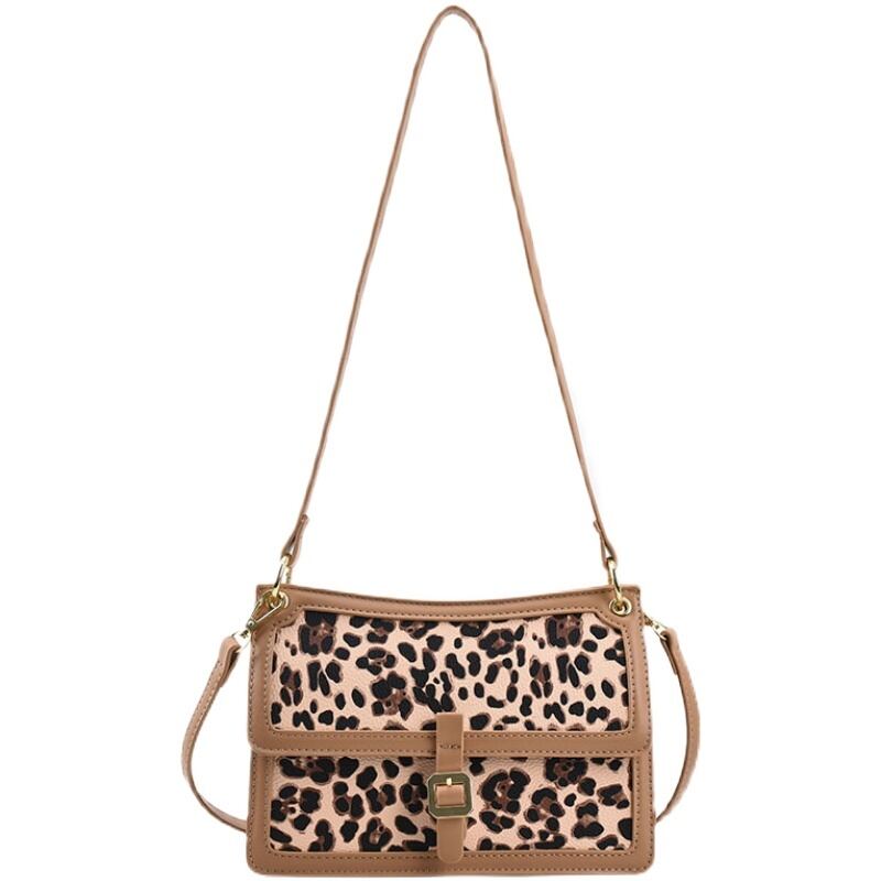 レオパードプリント柄 スクウェア メッセンジャーバッグ 手作りハンドバック60786259048