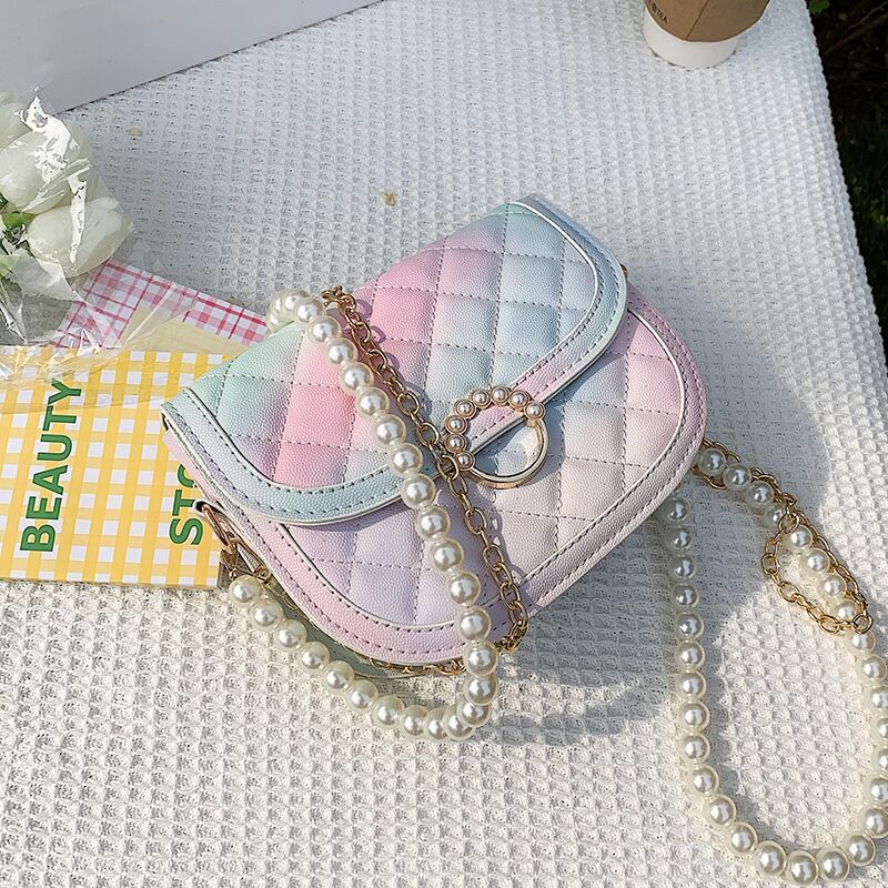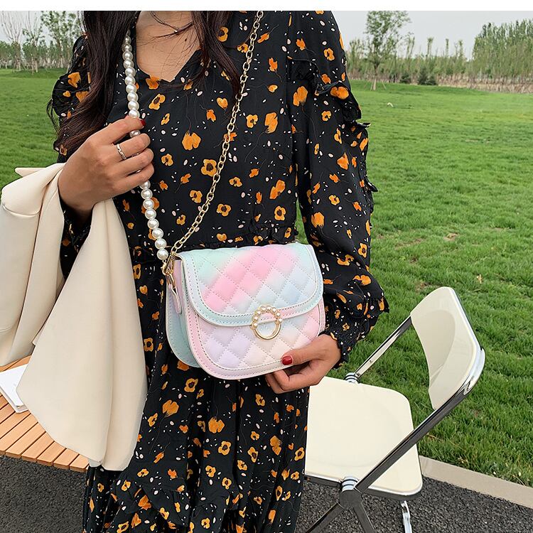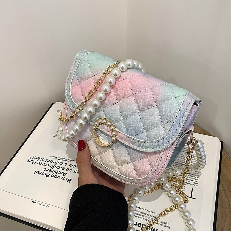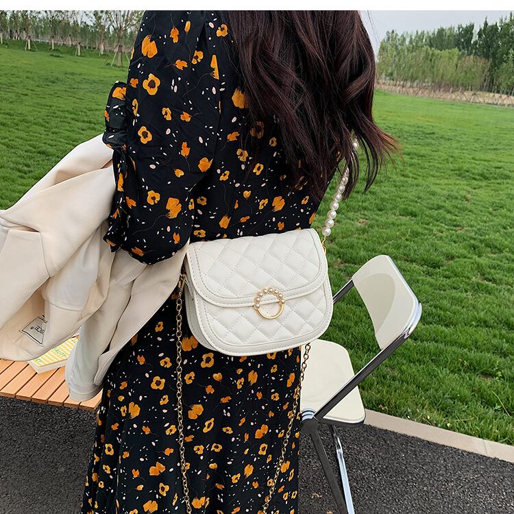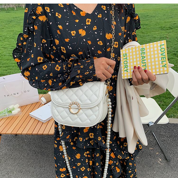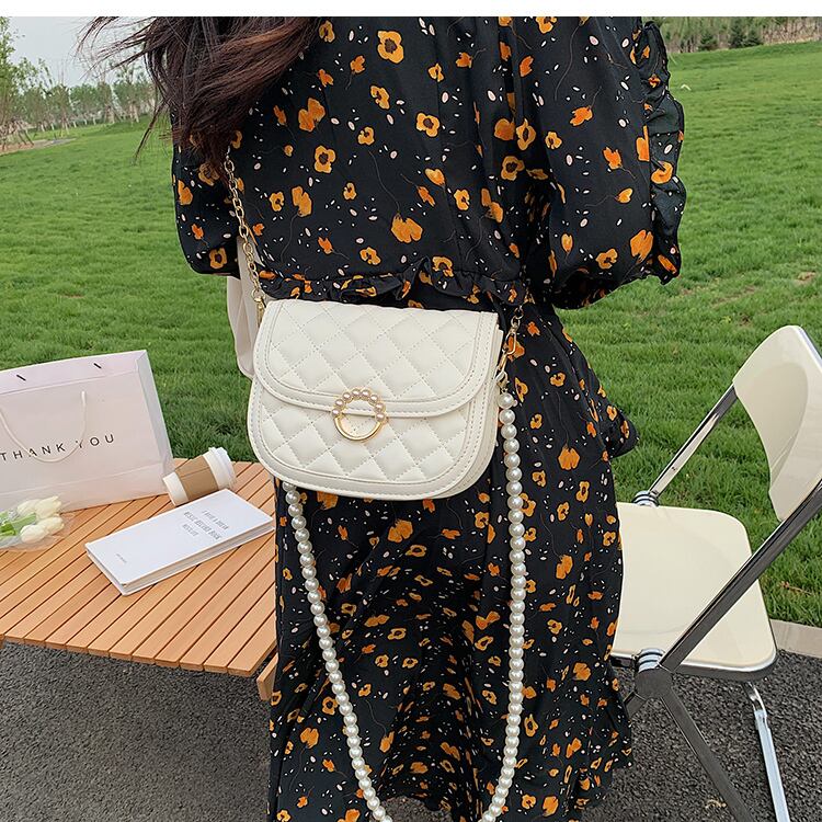サマーパールチェーン 夏物 真珠 メッセンジャーバッグ サドルバッグ シートバッグ 手作りハンドバック35262112209