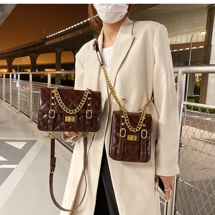 刺繍オータムチェーン 秋物 スクウェア メッセンジャーバッグ 手作りハンドバック12408558084
